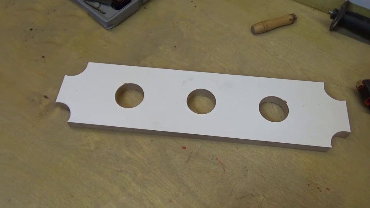 В итоге из старых свечей и обрезка доски получаем вполне симпатичную вешалку для одежды в гаражном стиле. Такую вешалку не стыдно и подарить друзьям в гараж.