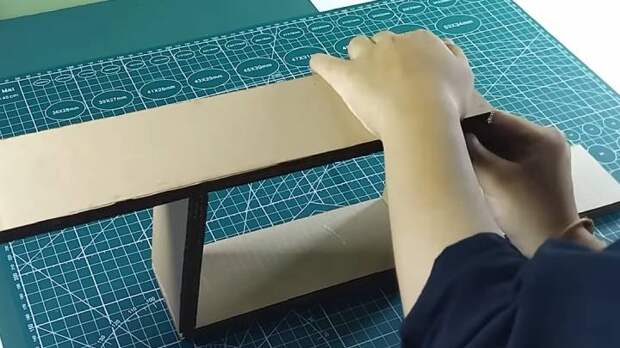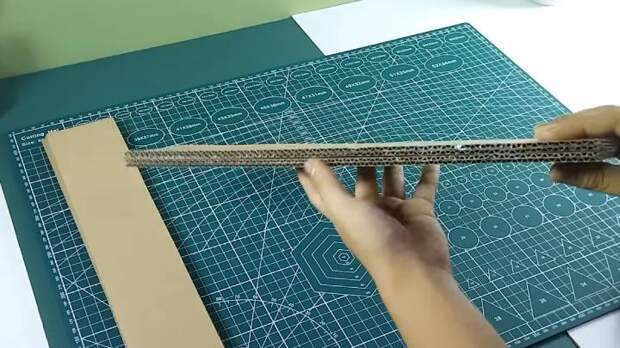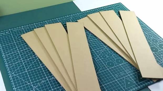 Нарежьте гофрокартон на полоски 28*7 см. Размеры опциональны и могут быть другими, согласно вашим предпочтениям. На 1 деталь нужно 4 полоски.