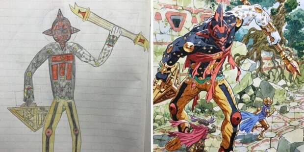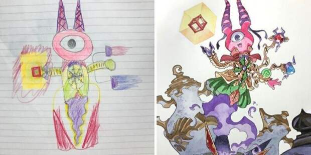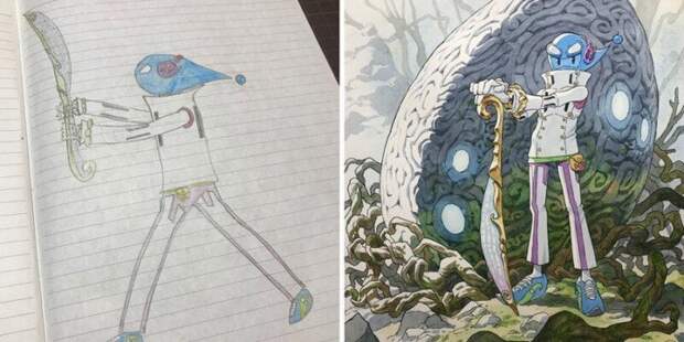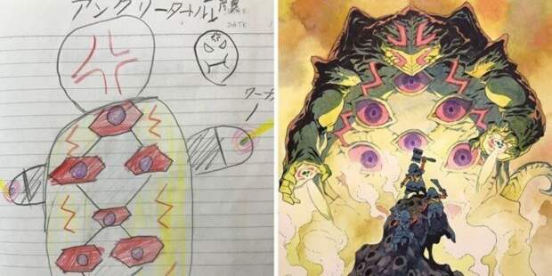 Специализирующийся на аниме французский художник Томас Ромейн сейчас живёт и работает в Токио и в свободное время приобщает к творчеству своих детей. Мужчина создает иллюстрации, вдохновляясь рисунками маленьких сыновей.