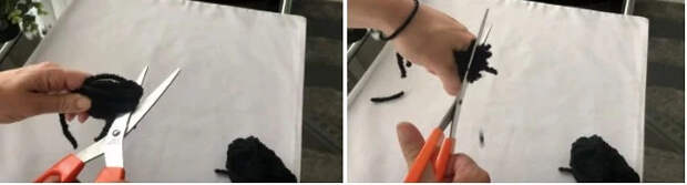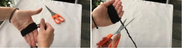 Сделайте кисточки для уголков подушки. Для этого намотайте на ладонь пряжу, как это показано на фото выше.
