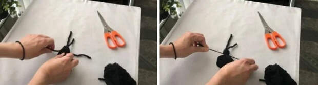 Из тонкой пряжи сделайте 7 кисточек так, как это описано в шаге 5 первого мастер-класса.