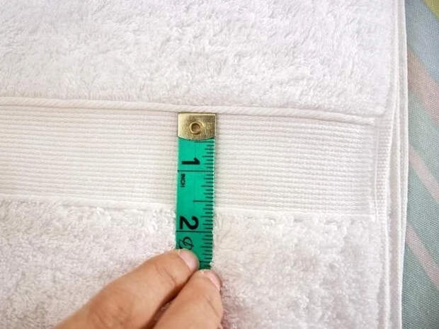 Измерьте фактурную полосу на полотенцах и подберите для неё тесьму или выкроите детали из красивой ткани.