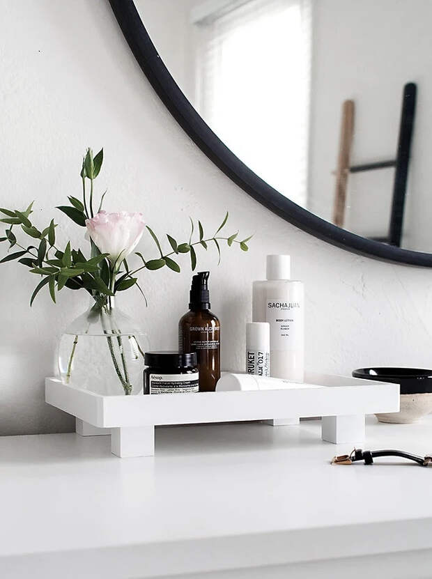 Косметика, размещённая в такой подставке, перестаёт выглядеть хаотичным нагромождением флаконов.