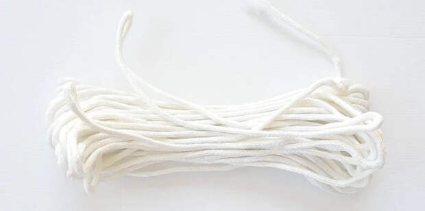 Этот коврик вяжется из тонкого шнура с помощью крючка большого размера.