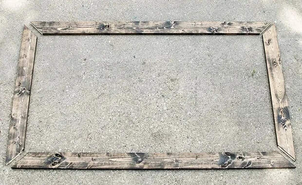 Снимите старую раму и измерьте её. Доски обрежьте до нужной длины и покройте морилкой.
