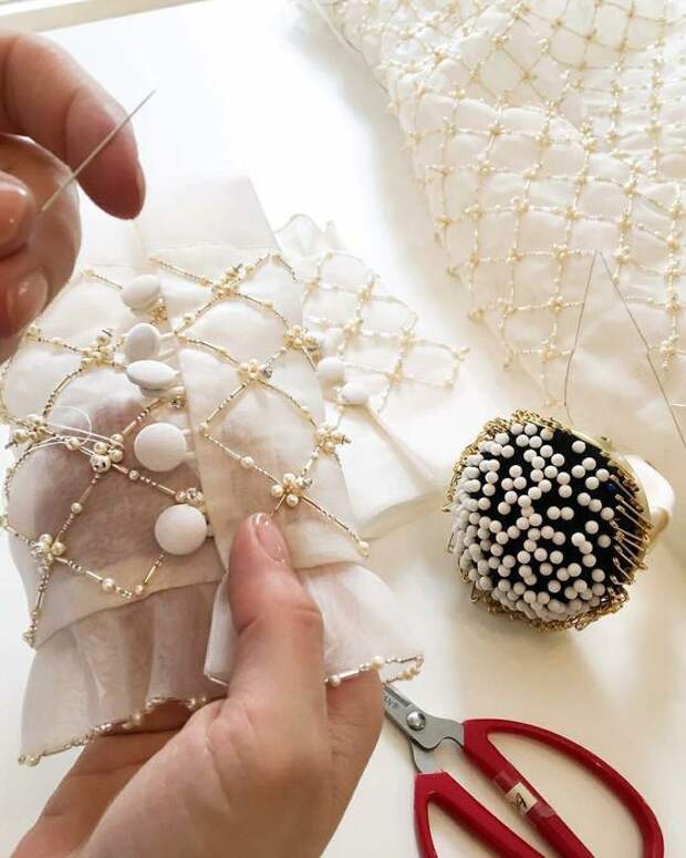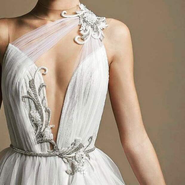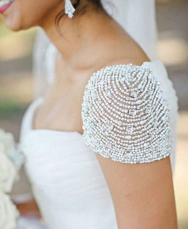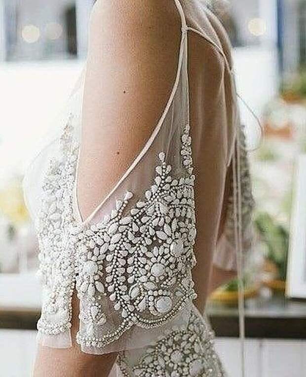 Примеры интересного рукодельного декора нарядной одежды и свадебных платьев: