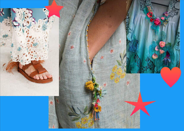 Обратите внимание- Дома Chanel и Valentino предлагают верх сшить из -лопкового кружева, техника ришелье. Конечно, есть варианты и попроще. Но тем не менее- выглядит очень эффектно! Есть идеи и в любимом вами бохо- более свободные и яркие.