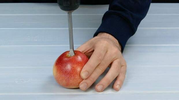 Закрепляем пику в шуруповерт и накалываем на нее яблоко.