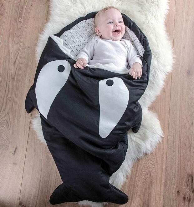 Спальный мешок для малышей в виде акулы не даст холодному ветру на прогулке забраться под одежду ребенка.