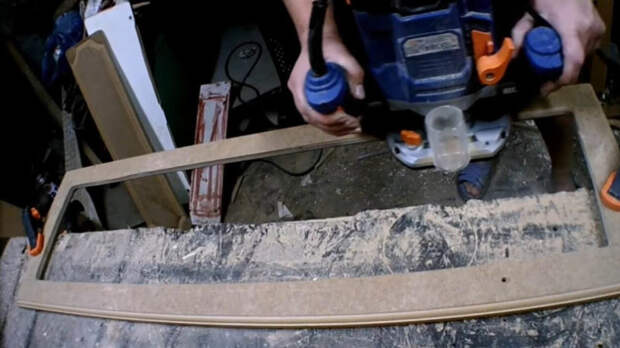 Дверцы приобретут совершенно новый вид. Прежде всего, лобзиком вырежьте отверстие в центре, слегка закруглив края.