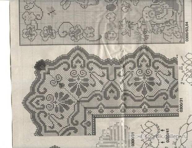 Схемы вязания каймы и обвязывания квадратов ткани: