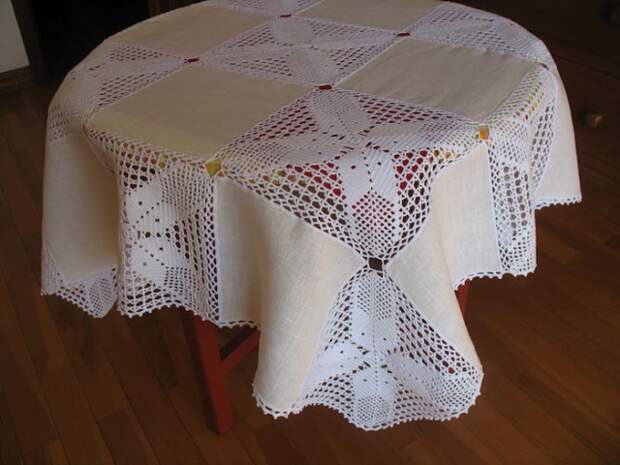 Предлагаем вам посмотреть варианты скатертей в комбинированной технике. Возможно, вы вдохновитесь и что-нибудь в такой технике сделаете.