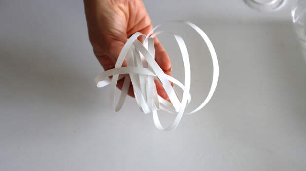 - Взяла стаканчик и разрезала его по спирали одной полосой. Ширина примерно 0,5 см.