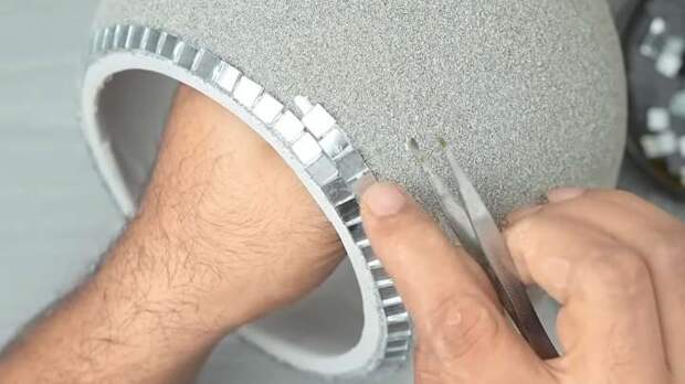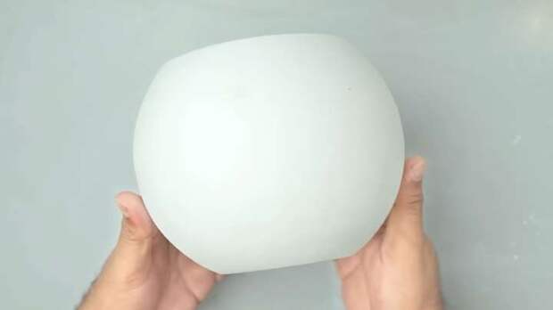 Проколите шар после полного высыхания клея и удалите его.Разведите белый цемент водой достаточно жидко. Налейте внутрь формы из бумаги, распределите по внутренним стенкам равномерно. Сделайте так 2-3 раза с промежуточным высыханием, чтобы слой цемента был достаточно толстым.