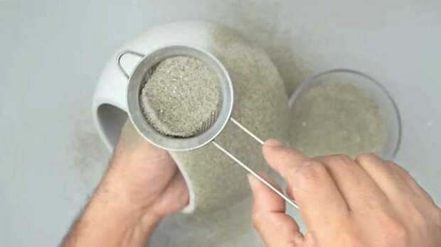 Нанесите слой клея ПВА, распределите кисточкой и сверху присыпьте просеянным песком.