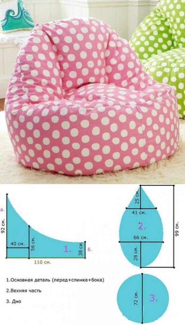 Начинаем шить кресло-мешок своими руками с пошаговой инструкцией и схемой: