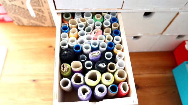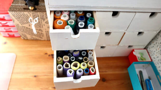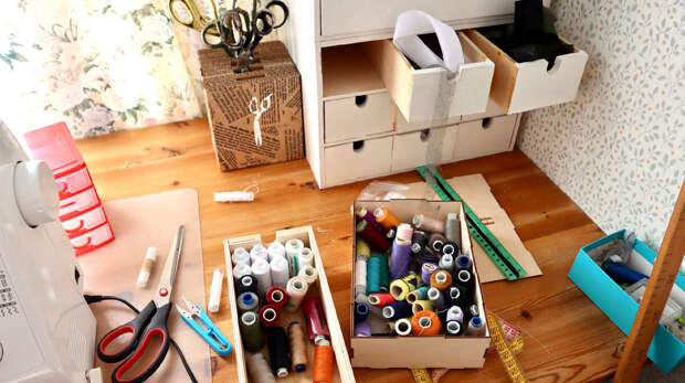 - Мне нравится, когда всё распределено. Например, все ножницы находятся в одном месте, нитки, иголки, булавки имеют свои уголки.