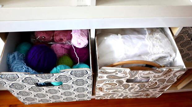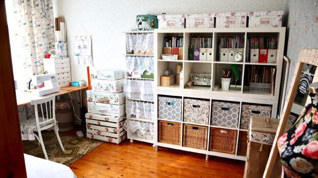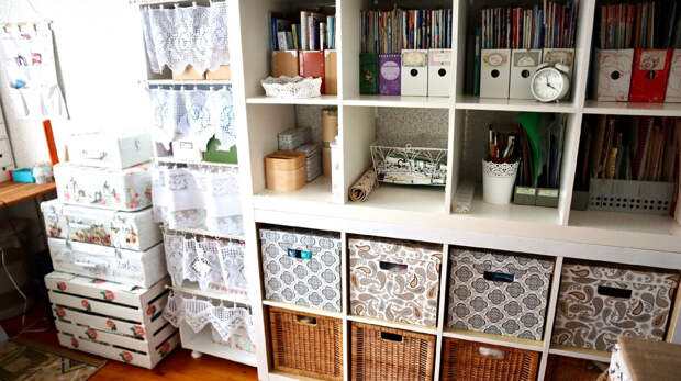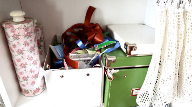Кто занимается рукоделием и творчеством, имеют большие запасы разного материала. У некоторых есть целые мастерские с большим количеством разных коробочек и ящичков с богатствами.