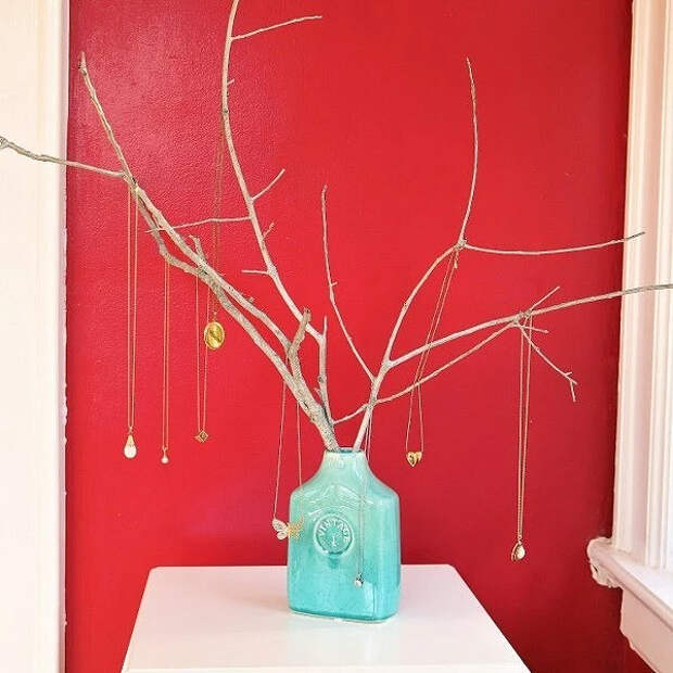 Получается одновременно и вешалка для бус и цепочек, и полочка для мелочей, и оригинальный предмет декора интерьера.