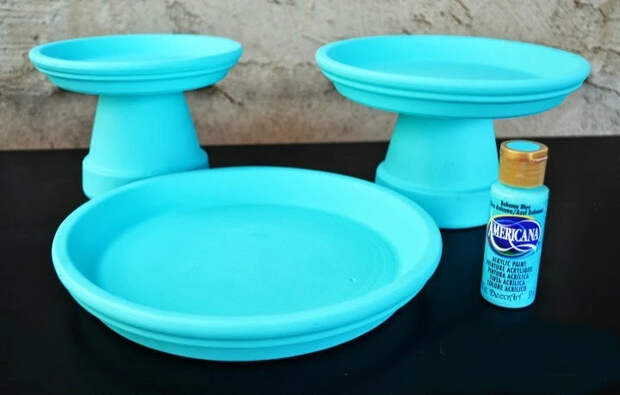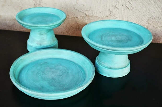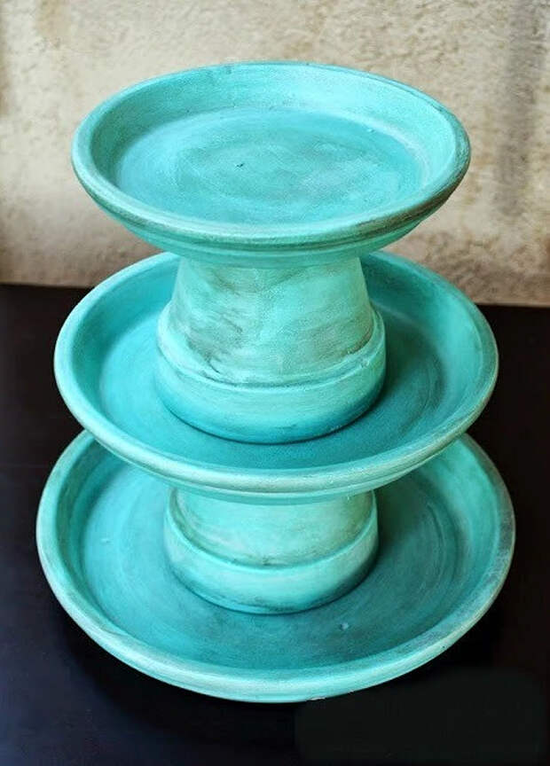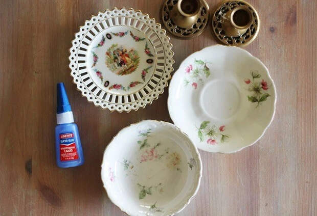 Приклейте тарелки к подсвечникам так, чтобы внизу была самая большая из тарелок, а вверху — самая маленькая. Дайте клею высохнуть. Готово!