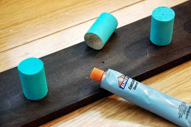 Для дюбелей просверлите отверстия и вставьте их туда. Крючки же можно просто ввернуть в дощечки. Готово!