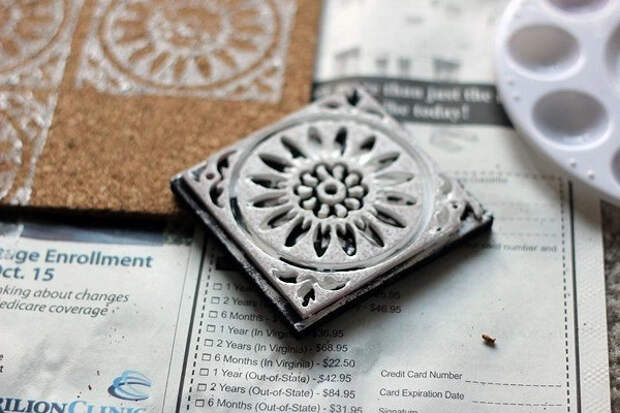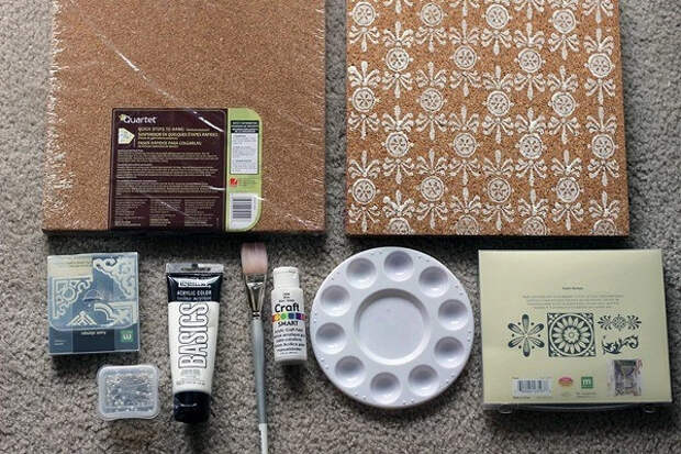 1. С помощью трафаретов и краски нанесите узор на дощечки.