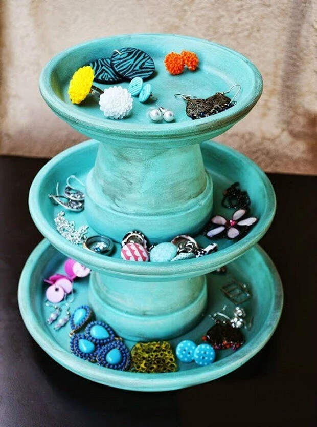 Подставки и органайзеры для хранения украшений можно сделать своими руками из блюдец, подсвечников, керамических горшков, строительной сетки, дверных ручек… Как — читайте подборку мастер-классов.