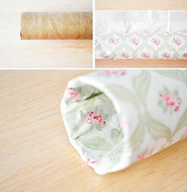 1. Очистите втулки от остатков полотенец, смажьте клеем и обклейте салфетками или бумагой, завернув концы бумаги внутрь втулок.