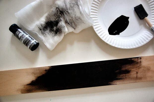 3. Эффекта состаренности можно добиться, взяв краску потемнее, разведя её водой и пройдясь губкой по предыдущему слою краски.