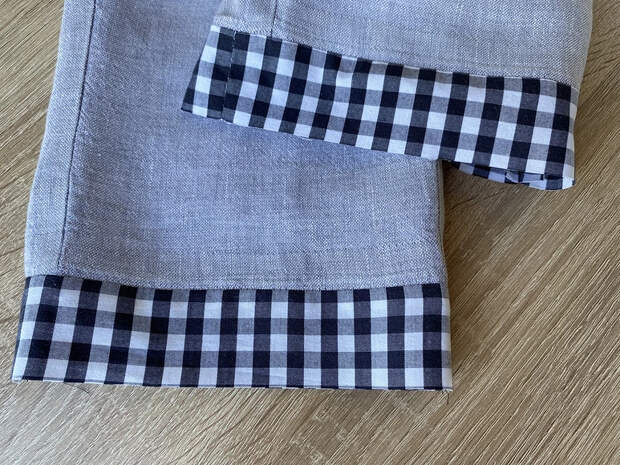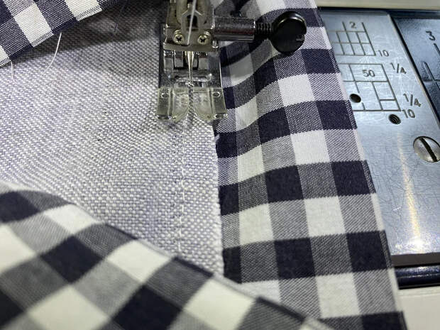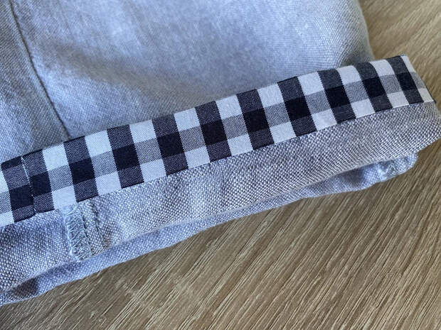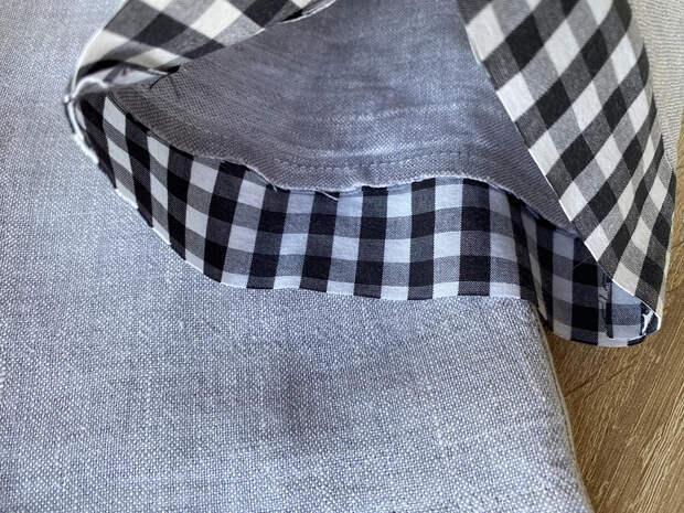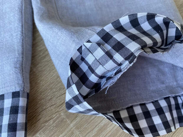В настоящем мастер-классе обтачные полосы выкроены из рубашечного хлопка, составные из двух деталей, шириной 5 см.