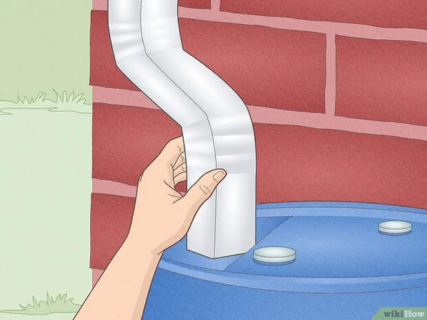 - Подсоедините бак к колену трубы. Если у бака есть крышка, проделайте отверстие, чтобы поместить водосточную трубу в бак. Закройте отверстие по краям металлическим экраном.