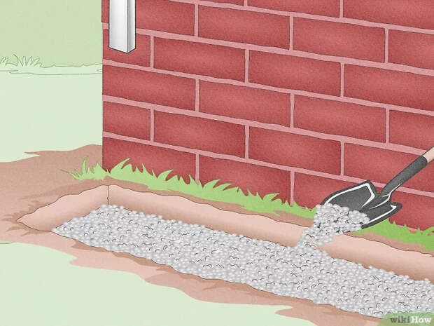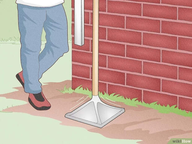 - Отмерьте участок земли под водосточной трубой. Водосточная труба представляет собой металлическую или пластиковую трубу, которая ведет с крыши к земле. Если вы хотите направить воду с крыши в ваши контейнеры, необходимо подготовить платформу. Возьмите лопату, уплотните землю в том месте под крышей, где будут стоять ваши баки для воды.[1]