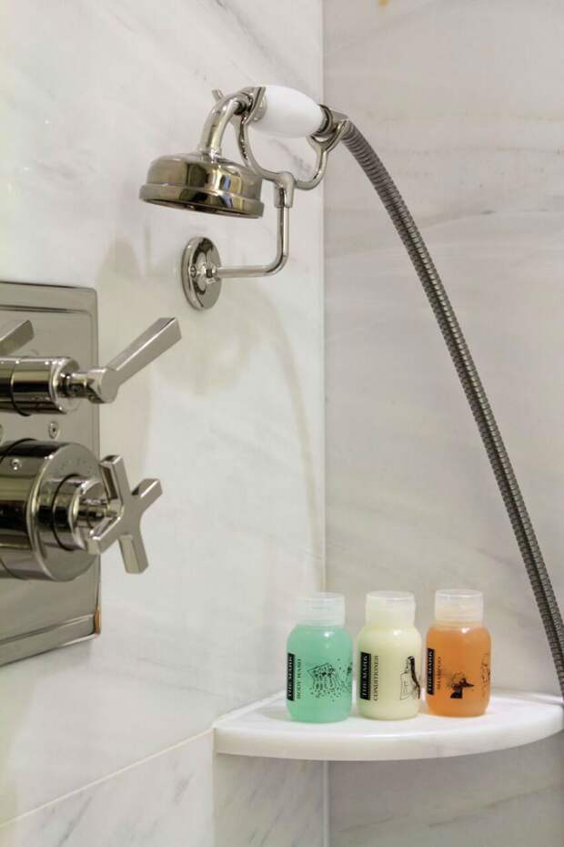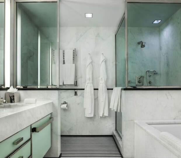 У них совершенно белоснежные ванные, отделанные мрамором и зеркалами.