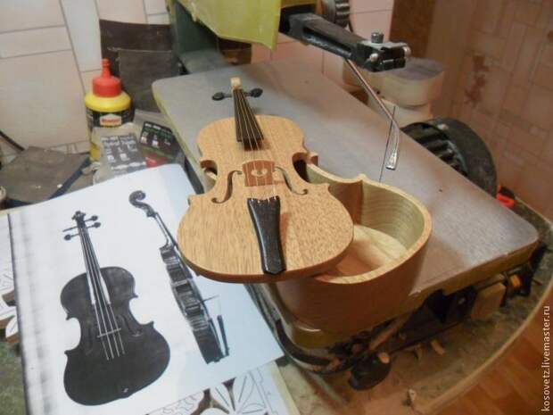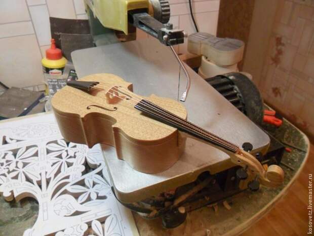 Эксклюзивная шкатулка СКРИПКА сделана автором Женей на электролобзике Proxxon, делал он её по картинке, взятой в интернете. На изготовление скрипки у автора ушло 3 дня