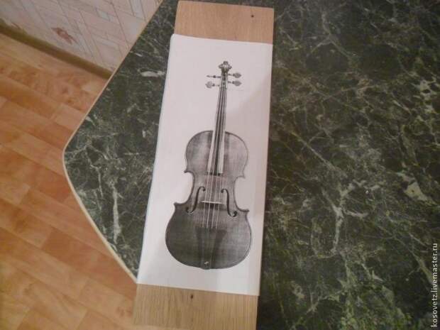 , глубина — 3 см., ширина — 9 см.Для начала я распечатал чертёж скрипки формата А4.