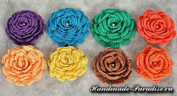 Вот такая красавица розочка крючком может у вас получиться для коврика ручной работы: