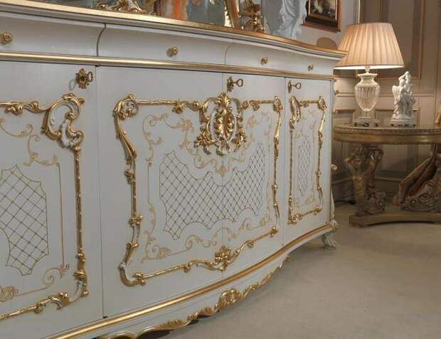 Если массив мебели находится на полу – это не всегда смотрится выигрышно в интерьере, особенно, если применяются устаревшие конструкции. Они лучше всего смотрятся на тонких ножках, которые могут быть разных форм и размеров. А ещё это отличная возможность для декорирования, ведь можно добавить на них накладки и наконечники из латуни и других блестящих металлов.