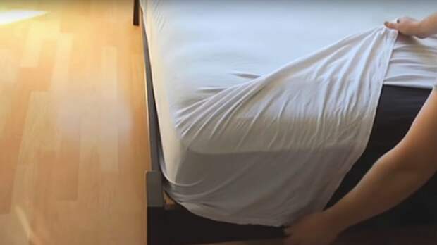 Теперь о постели. Чтобы слишком длинная простыня была аккуратно натянута на матрасе, необязательно полностью поднимать его и засовывать простыню слишком глубоко. Просто загни ее в направлении центра кровати, чтобы получился треугольник, и, придерживая одной рукой, заправь под матрас.