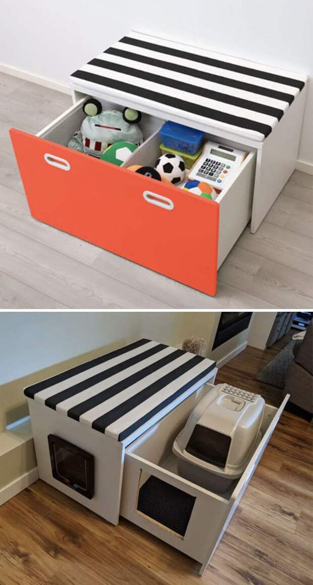 Fritids, два в одном: скрытый ящик/лавка для кошки