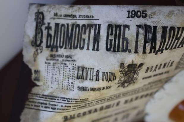Это "Ведомости Санкт-Петербургского градоначальства" от 18 октября 1905 года с текстом манифеста "Об усовершенствовании государственного порядка", подписанного императором Николаем II.