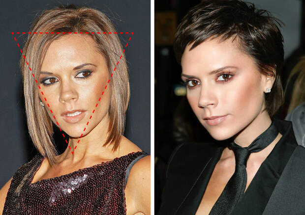 Стрижка пикси, или эльфийская стрижка, прекрасно подходит к разным типам лица. Но в сочетании с короткой рваной челкой особенно интересно смотрится именно на обладательницах треугольного лица. Икона стиля Виктория Бекхэм довольно долго отдавала предпочтение подобной стрижке.
