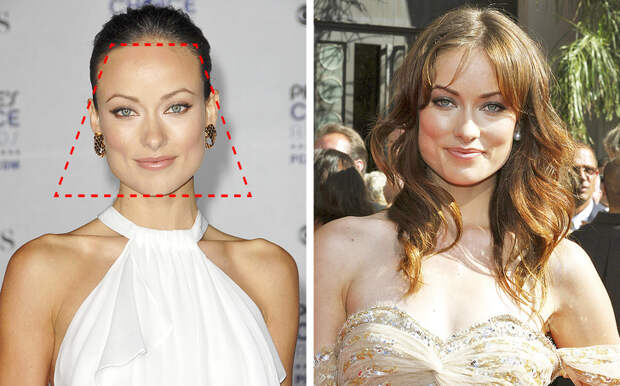 Мода на выраженные скулы позволяет подчеркивать их всеми возможными способами, например изящной густой челкой-каскадом, как у Оливии Уайлд. Такая челка помогает скорректировать ширину лица и визуально сделать скулы мягче.