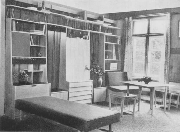 В общем, вслед за развитыми странами, в СССР тоже начали делать "квадратную" мебель, она хорошо вписывалась в малогабаритные квартиры и была многофункциональной, что тоже особенно важно при недостатке места. Скажем, в разных отделениях одного и того же шкафа могли одновремнно храниться бельё, посуда и книги и документы — в большой квартире для этих же целей можно было купить отдельные комод, шкаф-витрину, стеллаж и секретер.