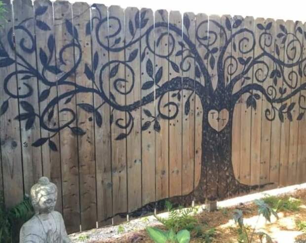 Проявите творческий подход, чтобы привлечь внимание к забору или оденьте старый забор. Раскрасьте забор красками, придав форму и дизайн. Получится колоритно.