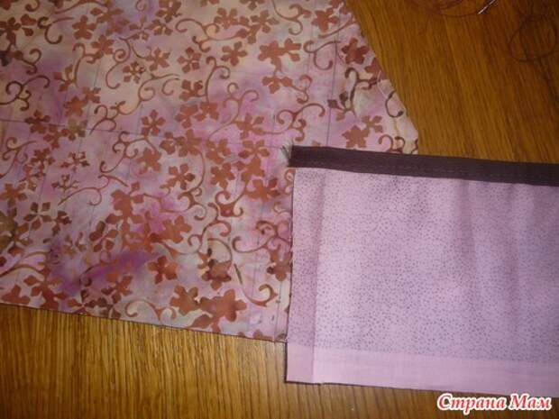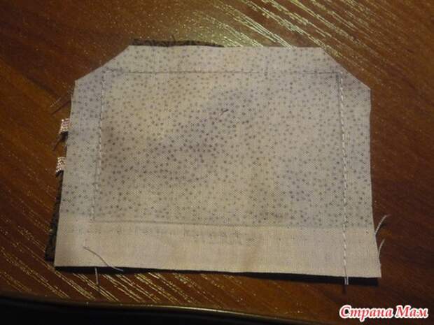 Накрываем вторым кусочком ткани( лицом к лицу) и прострачиваем по трем сторонам периметра.