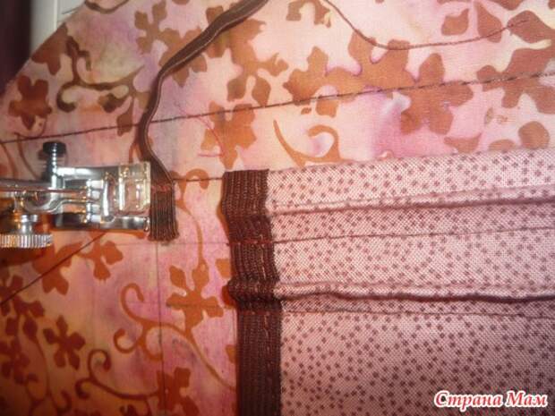 Пришиваем резинку(натягивая), делаем закрепки по ширине ячейки.
