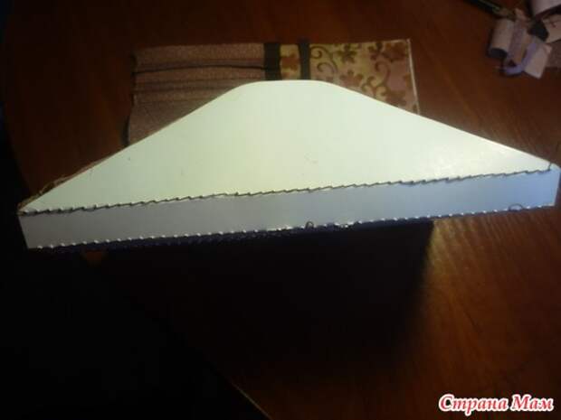 Обрабатывем треугольный срез клапана ( у меня другой тесьмой, но тут по желанию, можно даже не прерываясь обстрочить весь органайзер одним куском косой бейки или тесьмы)