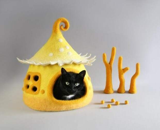 Благо, многие дизайнеры и рукодельницы, учитывая вкусы домашних пушистиков, создают разнообразные кошачьи домики и спальные места, в которых питомцы будут чувствовать себя в комфорте и безопасности. Более того, они отлично разнообразят и украсят интерьер дома их хозяев!