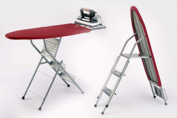 4. Гладильная доска-стремянка! Думаете, не может быть? А вот и нет... очень даже удобно, так как и доску, и стремянку дома хранить негде, а тут праздник! Два в одном, и надо выделить только одно место.