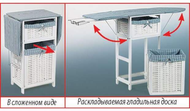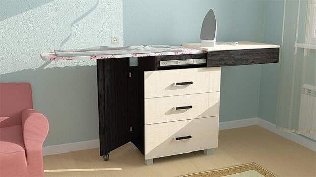7. Гладильные тумбочки-комоды. Вам не надо бегать из комнаты и раскладывать вещи, вы можете это сделать на месте :), особенно это удобно, если у вас маленький малыш. Также такой вариант можно использовать и как пеленальный столик.